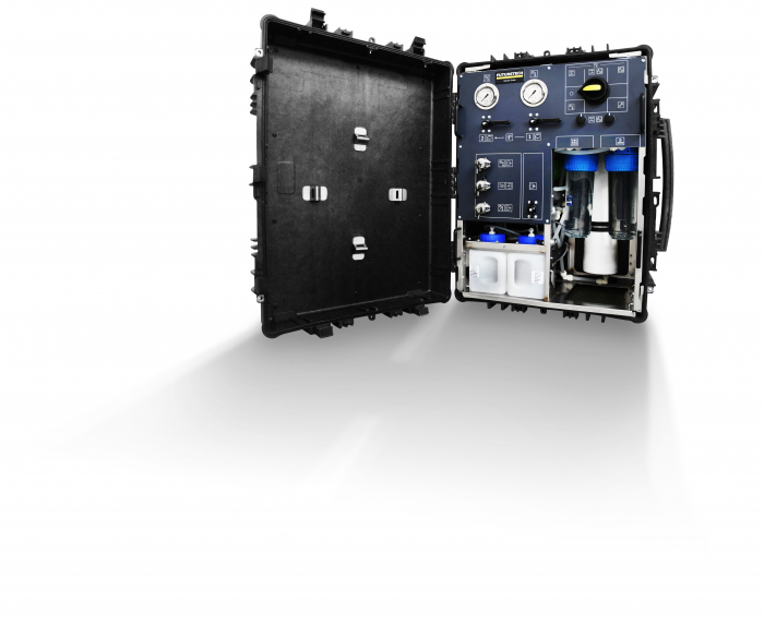 The WTC 200 UF produces up to 200 liters of drinking water per hour. This compact and robust system is lightweight, portable and intuitive to operate. Water purity is ensured by its water-cleaned ultrafiltration membranes, combined with activated carbon filters and chlorine.