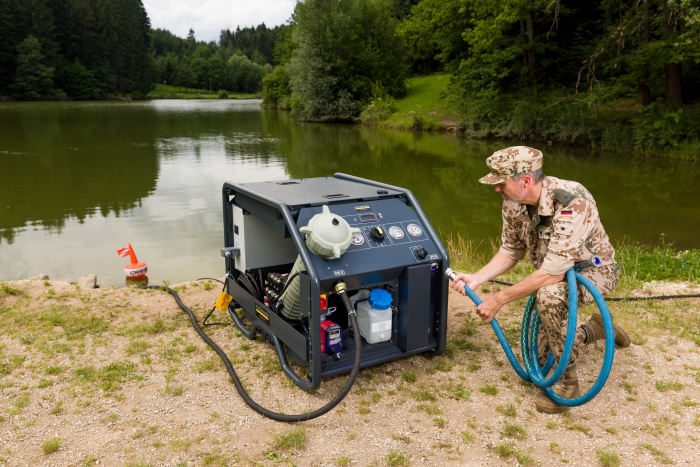 Die mobile Wasseraufbereitungsanlage WTC 700 ermöglicht eine Wasseraufbereitung auf Basis der Umkehrosmose mit einem Rückhalt von Partikeln, Mikroorganismen, Viren sowie Salzen und Chemikalien. Die kompakte Anlage im robusten Edelstahlrahmen ist einfach zu bedienen und transportierbar.
