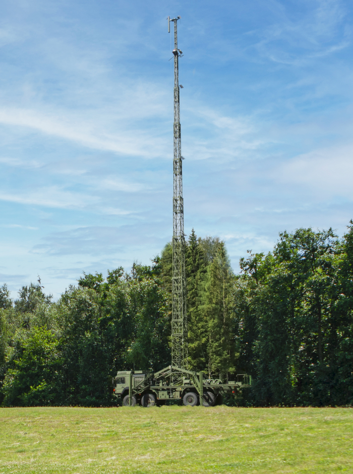 Die Mastsysteme lassen sich auf LKW, Anhängern, gepanzerten Fahrzeugen oder in Containern integrieren und bilden eine bewährte Grundlage für kritische Anwendungen in sicherheits‑ und verteidigungsrelevanten Szenarien wie Kommunikation, Datenübertragung, Beobachtung, Aufklärung und Jamming.