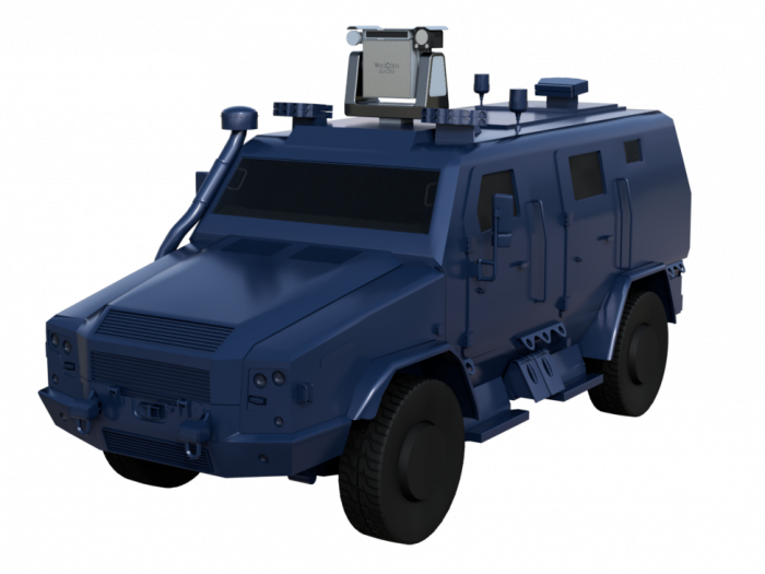 Stabilized Pan-Tilt Head top of Armored Vehicles: HxWxD: 855 x 800 x 600 [mm]Weight: 120 Kg FULL PAYLOADCarbon fiber structureIMU stabilization360° continuous rotation on pan axis+/-80° on tilt axisRotational speed up to 60°/s full loadDouble TILT motor